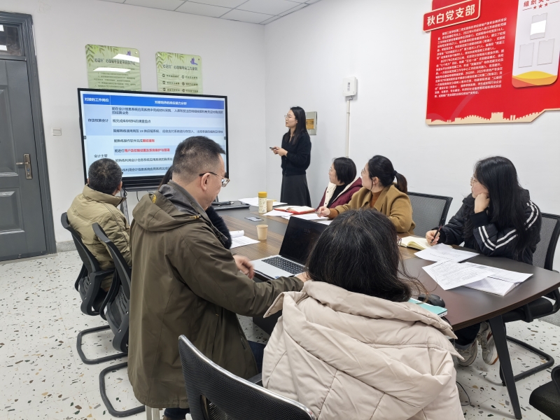 会议中,首先,姜春就2024版《会计信息系统应用》的课程标准展开汇报。王礼红针对该课程标准提出,采购与应付款管理系统业务处理等可适当增加课时,结合理论知识进行讲解。王文娟结合自身教授该门课程的经验提出建议,在授课时可采用分组形式,组织员工小组讨论,培养员工主动思考、解决问题的能力;同时,每个小组进行积分奖励,以充分调动员工的积极性;其次,围绕大数据与会计专业的课程体系建设,应充分发挥大赛软件的价值,现有的课程可结合大赛软件进行理实一体化教学,提高课堂的质量。最后,王礼红分享了团队参加江苏省业财税赛项的备赛经验,王文娟则展示了第五届全国高等院校财务数智化大赛(财务大数据分析赛项)(江苏省赛)获奖作品,讲解了在备赛时选手准备PPT及汇报时的注意事项,为我们会计技能赛的备赛提供了思路。